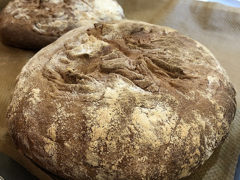 После окончания расстойки переверните тесто на доску, острым ножом сделайте надрезы крест-накрест и отправляйте в печь. Примерно через 5 минут убавьте температуру духовки до 230 градусов и выпекайте около 30–40 минут. Когда хлеб будет готов, вытащите его из печи и дайте полностью остыть. Готово!