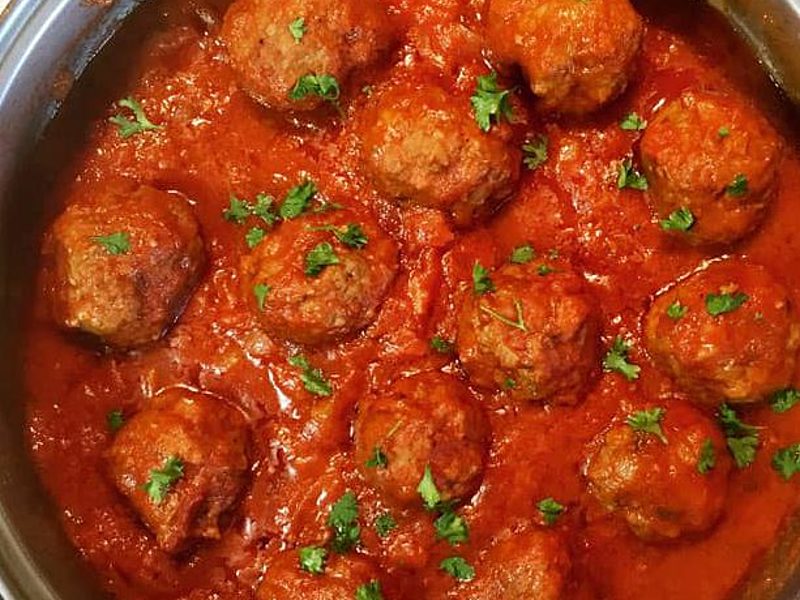 Cover and cook for 10 minutes until the meatballs are warmed through. Then scoop the sauce and meatballs onto deep plates. Serve hot.