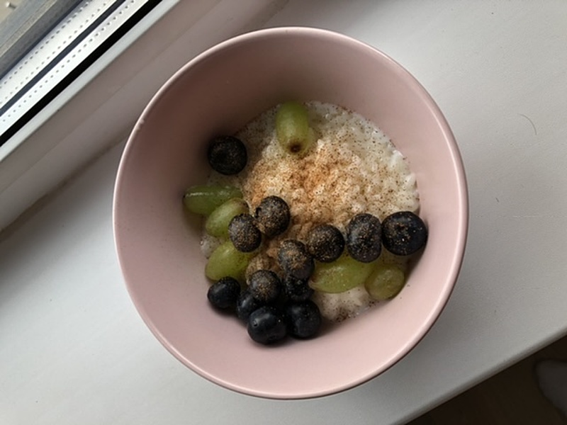 4. Разложить кашу по тарелкам, добавить ягоды и посыпать корицей. Готово!
