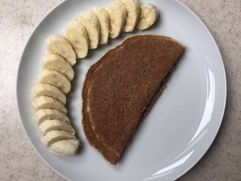 4. Когда блин готов, нужно намазать его арахисовой пастой и выложить на тарелку рядом с бананом.